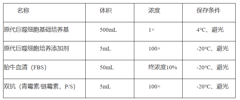 本产品中已包含兔原代肠巨噬细胞生长所需的各种成分,无需添加任何成分,可直接用于兔原代肠巨噬细胞的培养。