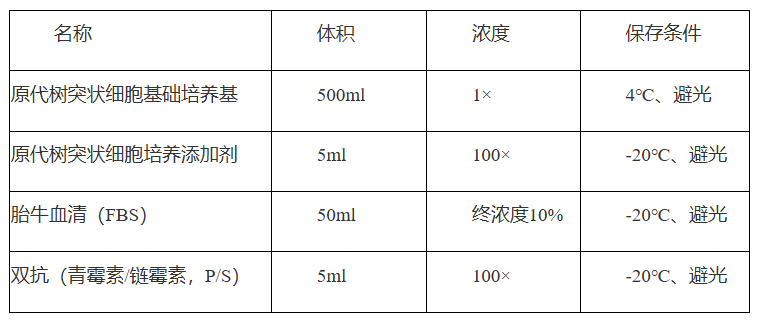 本产品中已包含大鼠原代DC细胞生长所需的各种成分,无需添加任何成分,可直接用于大鼠原代DC细胞的培养。